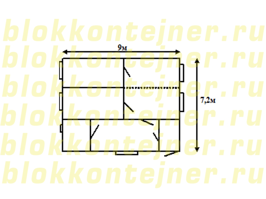 Блок –модуль   БМ 9,0*7,2*2,5м состоит из 3-х БК  9,0*2,4*2,5м
