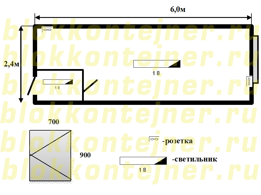 ГлавнаяПроектыВагончики бытовки → Блок-контейнер 6м для жилья с тамбуром